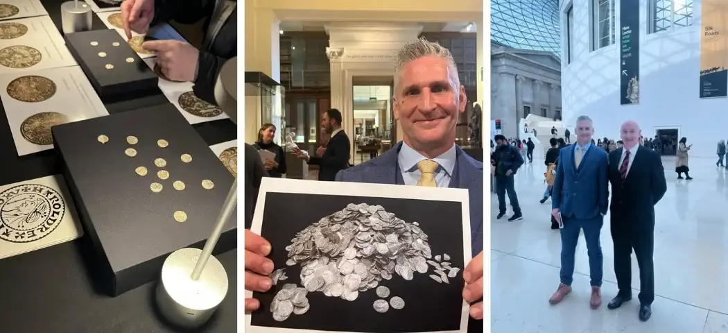 Following the discovery, the treasure was acquired by the British Museum, where it will be preserved and studied for years to come, enriching our understanding of this pivotal period in history. Minelab was proudly represented by our colleague Ciaran Duffy at the museum during the acquisition, marking an unforgettable moment in the company’s history.